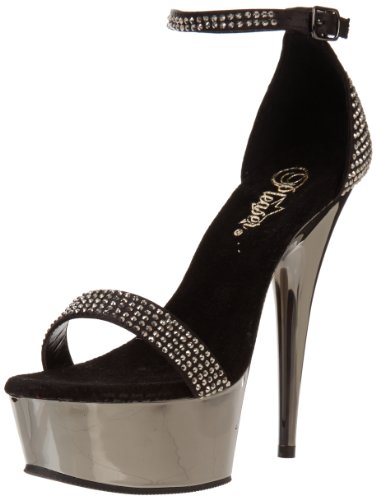 Best Seller! Pleaser Women's Delight-617 PWCH Platform Sandal,Black Satin/Pewter Chrome,11 M US Review